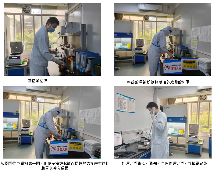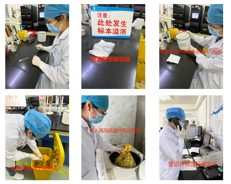 5月14日,在医院感染管理科的指导下,南溪山医院检验科开展“实验室生物安全事故应急演练”活动,演练内容包括:工作人员针刺伤、危化品溢撒和标本溢撒等安全事故应急处置演练。