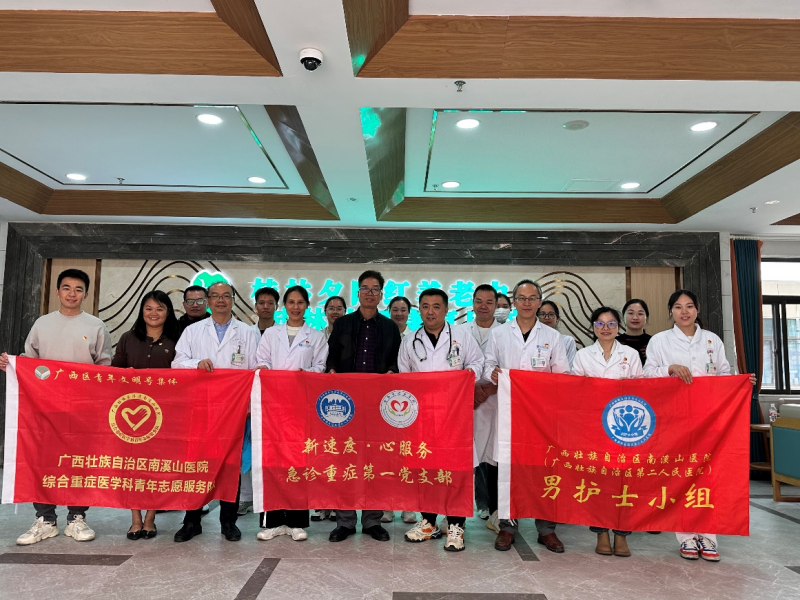 11月9日,广西壮族自治区南溪山医院急诊重症第一、第二党支部携手医院男护士小组,走进了夕阳红养老院,开展了一场温馨而富有意义的健康义诊活动。