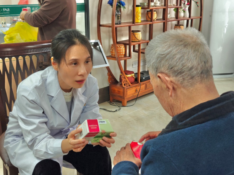 韦妍飞主任医师为老人讲解药品的使用