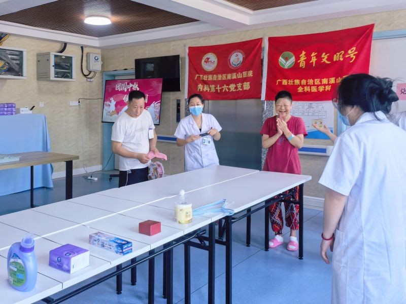 在这秋风送爽,月满人间的美好时刻,9月17日上午,广西壮族自治区南溪山医院内科第十六党支部(全科医学科)开展了一场别开生面的“团圆中秋,健康游园”活动,为住院的病友们编织了一幕幕温馨与欢乐,让病友在医院也能感受到中秋佳节的浓厚氛围与家的温暖。