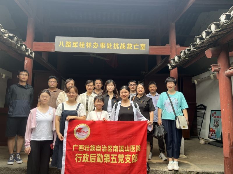 为一步增强党员干部的纪律意识和党性修养,7月27日,广西壮族自治区南溪山医院行政后勤第五党支部全体党员赴灵川县开展了一场主题为“重温历史 锤炼党性”的主题党日活动。