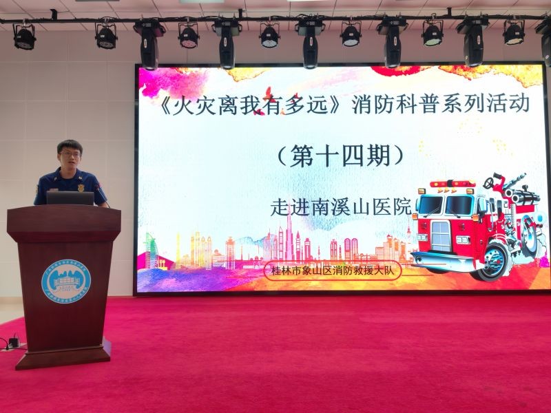 6月27日,广西壮族自治区南溪山医院开展消防安全知识培训讲座,邀请桂林市象山区象鼻山消防救援站副站长李东源进行授课,医院各科室消防安全责任人、义务消防员、消防宣传员及职工参加培训。