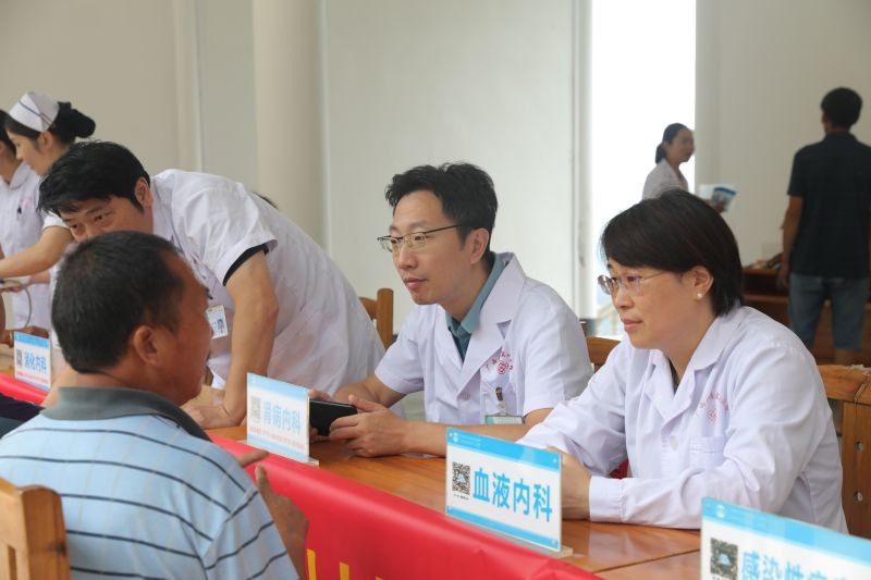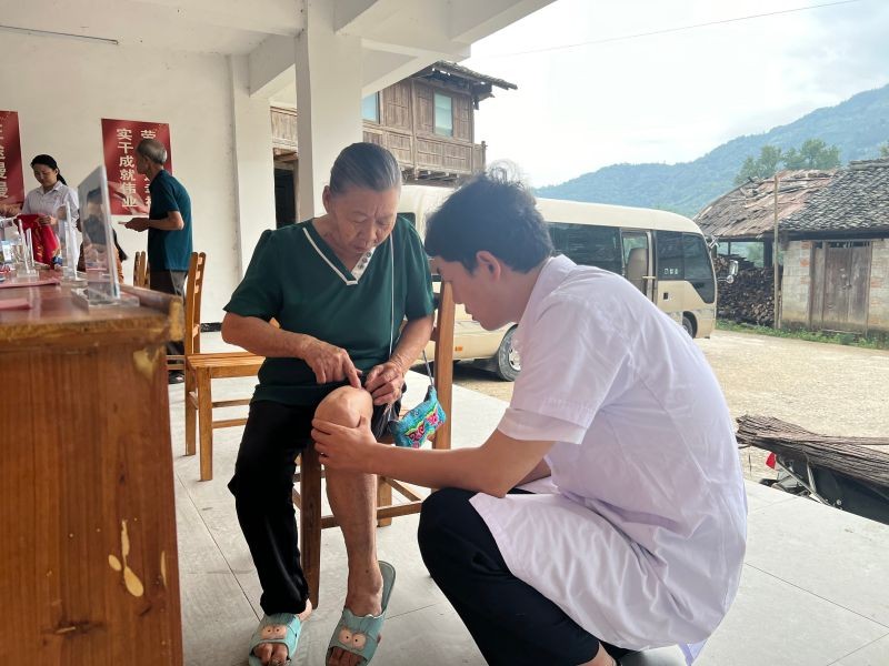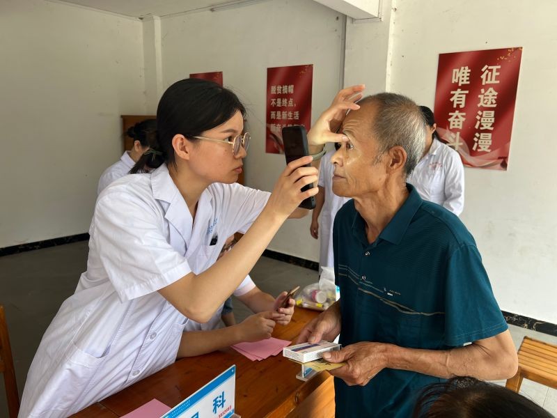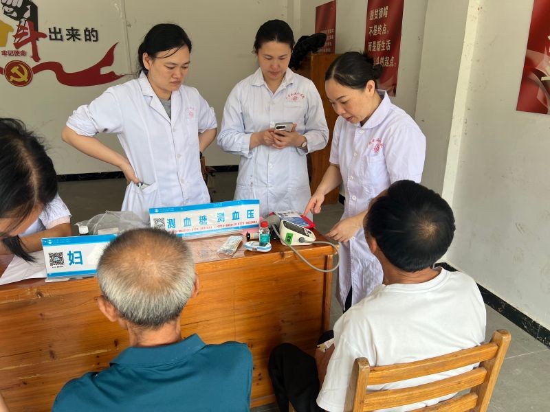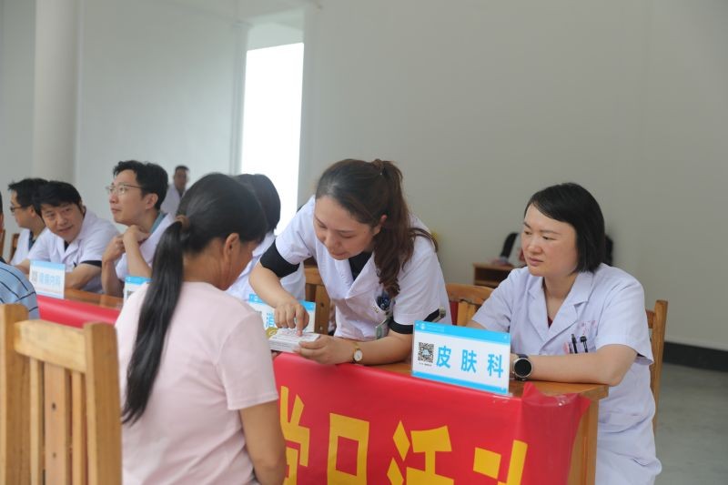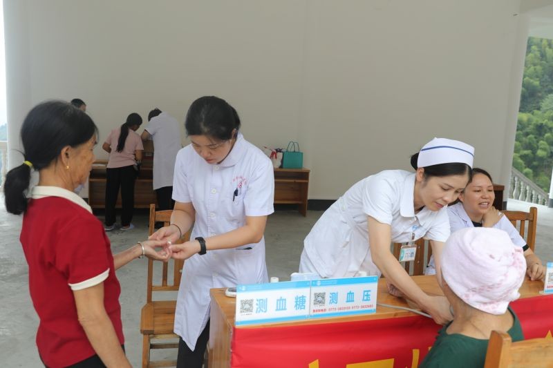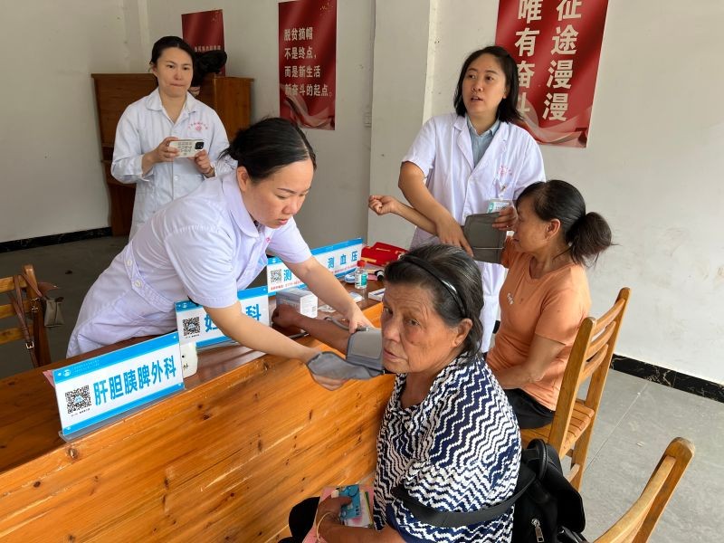 在义诊现场,南溪山医院的医疗专家们现场开展义诊活动,为当地群众免费提供看病咨询、测量血压、血糖等服务,并向他们发放药品,助力基层健康科普工作的开展。