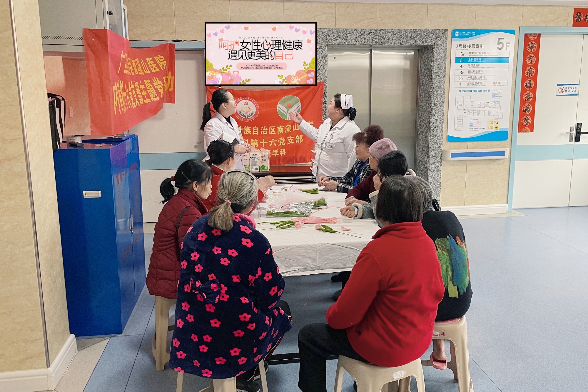 阳春三月,春意浓浓。为庆祝“三八”国际妇女节114周年,进一步丰富住院女患者的精神文化生活,南溪山医院内科第十六党支部组织开展“把春天带回家”主题党日活动,进一步增强女职工队伍凝聚力和归属感,促进和谐医患关系,提高服务患者满意度。