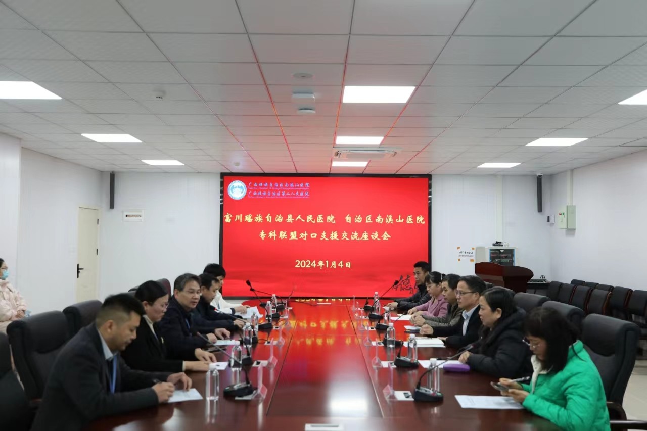 1月4日,贺州市富川县卫健局副局长唐睿、富川县人民医院党委书记、院长明新周带领相关负责人一行7人到广西壮族自治区南溪山医院,就建立专科联盟,开展对口帮扶工作进行了座谈交流。