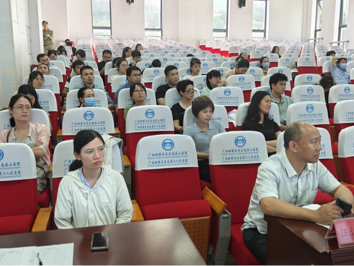 为贯彻《“健康中国 2030”规划纲要》以及《遏制微生物耐药国家行动计划》2022-2025 年)文件精神,规范抗菌药物合理使用,遏制细菌耐药,有效控制 DDD值,进一步提高抗感染治疗水平,实现提高医疗质量,保障医疗安全的目标,5月24日,广西壮族自治区南溪山医院药学部举行“抗菌药物的合理应用”专题培训会。会议邀请了来自广东药科大学第一附属医院吴红卫教授及南昌大学第一附属医院欧阳爱军教授进行授课,全院临床医技科室医务人员参加本次会议。