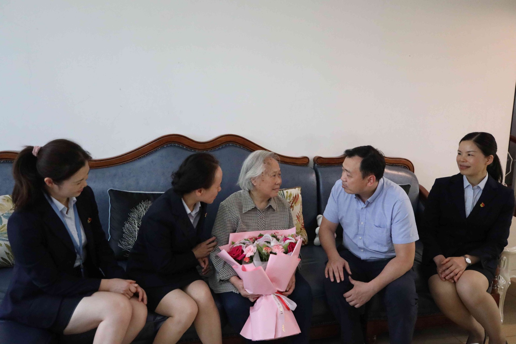 当天上午,医院副院长胡长付、护理部主任罗海燕、副主任黄锦芳、张健坤以及离退休管理科科长陶娟走进护理老职工代表师淑琴、杨淑珍、郑桓等老同志家中,向前辈们送上鲜花和慰问品。