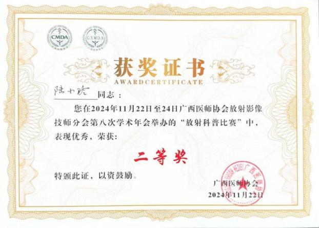 自治区南溪山医院影像科技术团队在广西医师协会放射影像技师分会第八次学术年会获优异成绩
