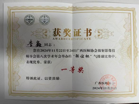 南溪山医院影像科技术团队积极参与其中,在学术交流、科普竞赛和气排球比赛等各个方面收获颇丰。陆小玲荣获首届科普比赛二等奖,李鑫、刘运昌获气排球比赛一等奖,全昌毅做了论文交流发言。