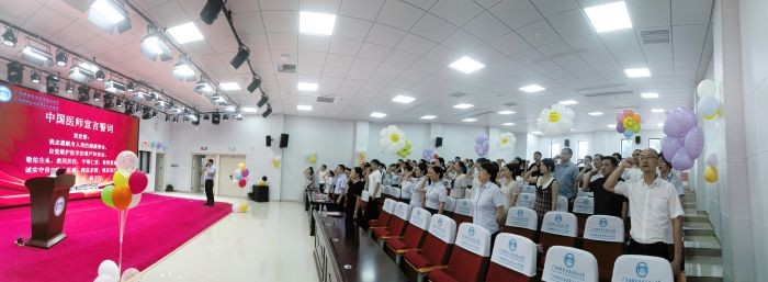即将踏上新征程的61名结业住院医师,在胡长付副院长的带领下再一次庄严宣誓。“我志愿献身人类的健康事业,自觉维护医学的尊严和神圣……”此时此刻,对于即将肩负起更大责任、更光荣使命的结业住培学员们来说,用铮铮誓言彰显永恒初心。
