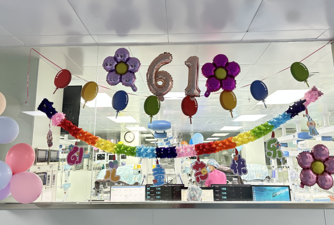 5月31日,自治区南溪山医院新生儿科充满着温馨欢乐的气氛。由于早产或疾病,许多宝宝不得不在保暖箱里度过他们的第一个儿童节。医院的新生儿科团队为了让这些新生儿们感受到节日的欢乐氛围,他们精心策划了一系列温馨的活动,为宝宝们送上人生中的第一个儿童节祝福,确保每一个小生命都能感受到节日的温暖。