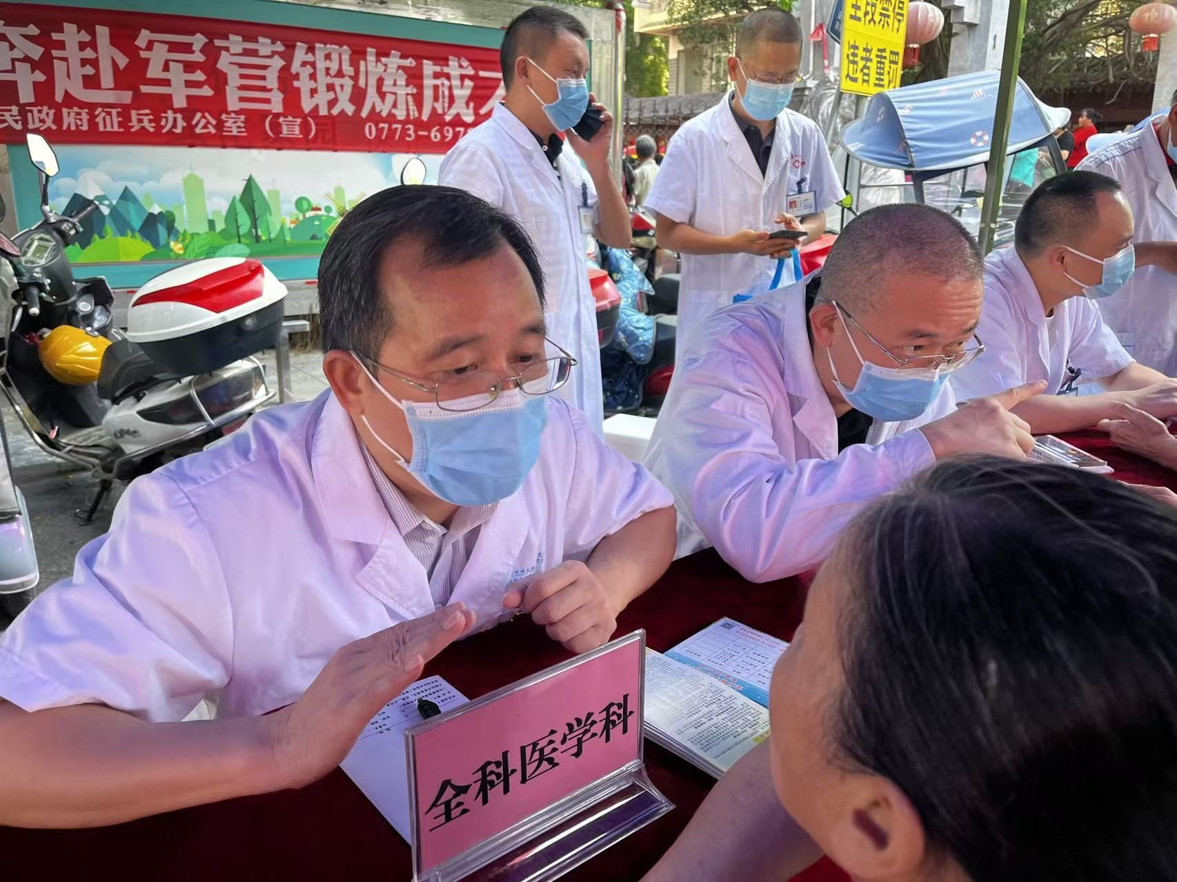 (图为老年病科周国庆主任为群众义诊)