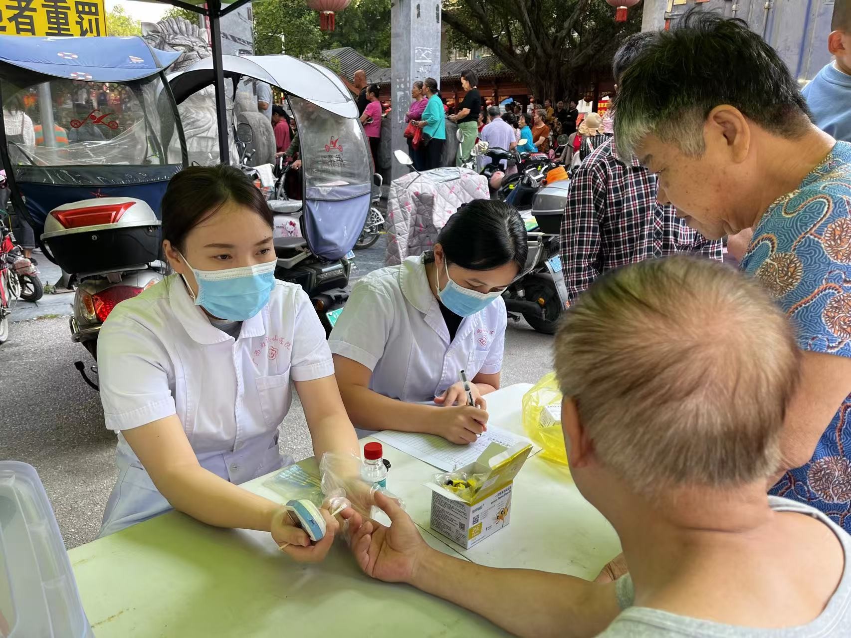 (图为现场提供量血压、测血糖、健康咨询等服务)