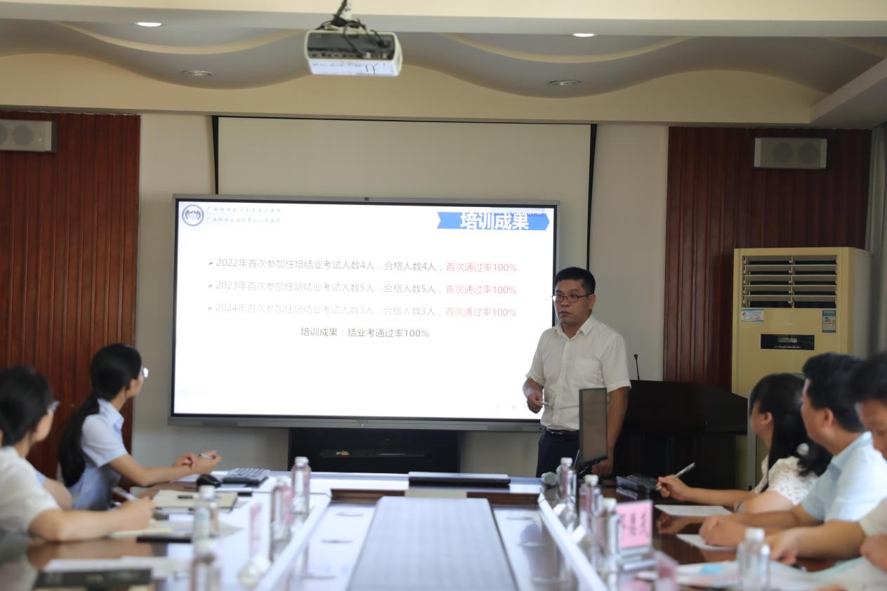 汇报会上,组长邓德茂教授介绍了督导检查流程,他表示,本次督导主要从专业基地情况汇报、查看资料、访谈和现场考核(教学阅片、影像报告书写与指导和技能操作抽考)等方式进行督导检查,主要目的是了解全区住培基地的住培工作开展的综合情况,对各住培基地进行动态评估,以便更好推进全区放射学科住培工作同质化发展。