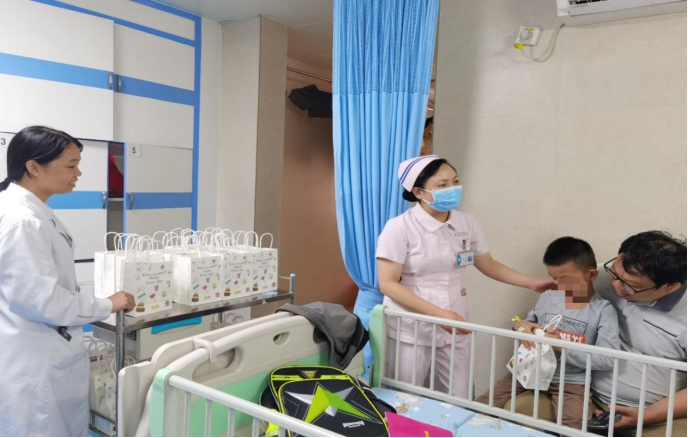 今天上午,儿科住院部、儿科重症监护室、儿科共享病房的小朋友都收到了一份精美的礼物,孩子们的脸上都洋溢着幸福快乐的笑容。儿科护士长朱文娟说:在这属于儿童的节日里,给住院的孩子们送上一份小礼物,让他们在住院期间,也能感受节日的快乐,度过一个快乐的六一儿童节,也希望他们能早日康复。