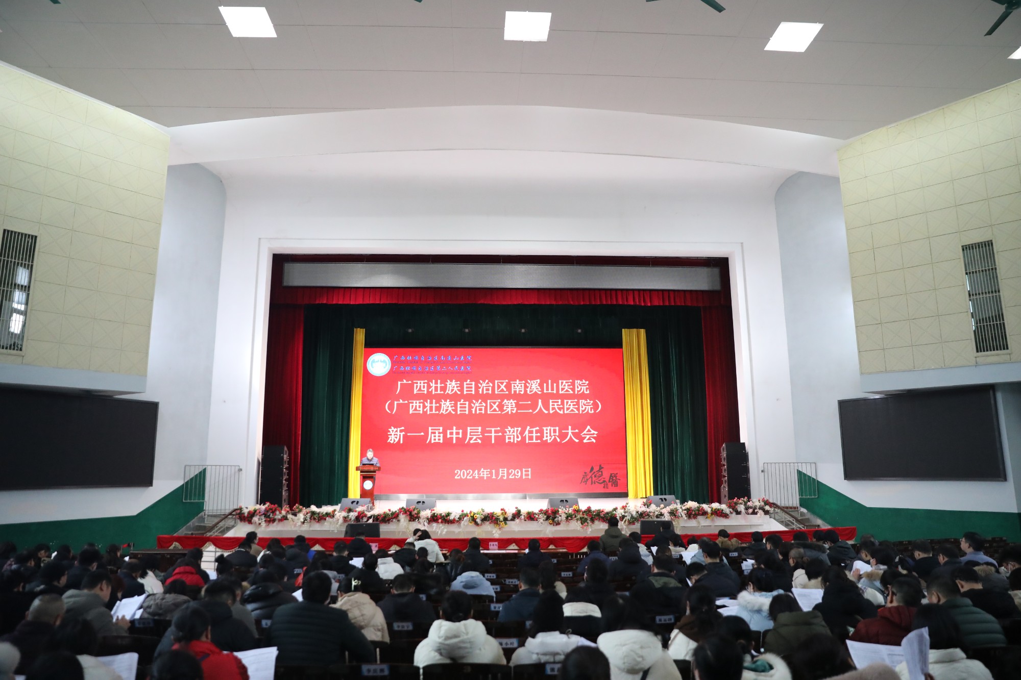 1月29日,广西壮族自治区南溪山医院在医院大礼堂召开新一届中层干部任职大会,齐心协力共谋高质量发展新蓝图。