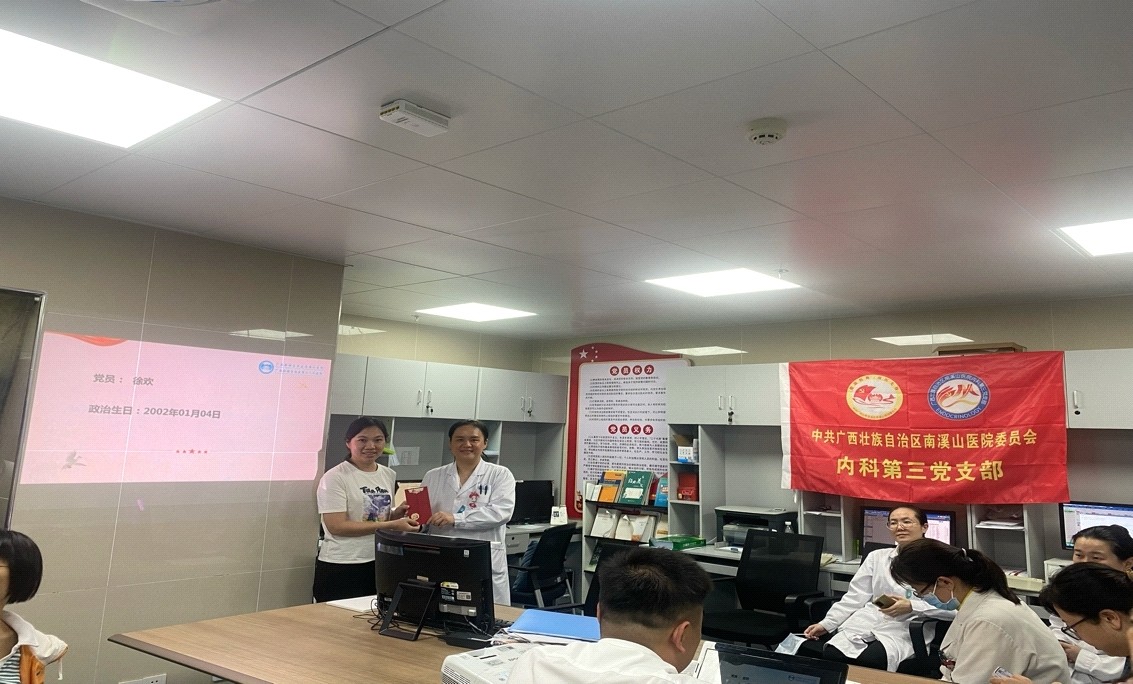 4月22日,广西壮族自治区南溪山医院内科第三党支部为科室7名党员举行过政治生日活动,并以党课形式集体学习,加强支部党员党性修养。