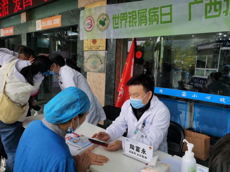 2024年10月29日,是第21个“世界银屑病日”。为了关爱银屑病患者,提高公众对银屑病的认知与理解,广西壮族自治区南溪山医院皮肤科性病科在这一天上午举办了一场以“心相印,爱无银”为主题的义诊活动。此次活动旨在为患者提供免费医疗咨询,普及银屑病防治知识,帮助更多银屑病患者树立治疗的信心。