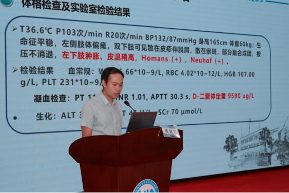 南溪山医院副院长胡长付致辞,强调药师在医院管理中凸显出越来越重要的作用,比如前置审方、药学会诊、药学个体化检测以及临床药师驻科开展合理用药等药学服务方面越来越重要,加强医院药师专业能力建设可以进一步帮助临床可以在DRG及合理用药方面提升疾病治疗水平,帮助临床医生做好规范化诊疗工作。他希望药师在医院的医教研各方面有长足进步,为医院的高质量发展添砖加瓦。随后,总院药学部欧阳明药师以《静脉血栓案例分析》为题做专题汇报,结合临床药学监护和相关指南进行用药分析,体现扎实的理论基础和丰富的实践经验。