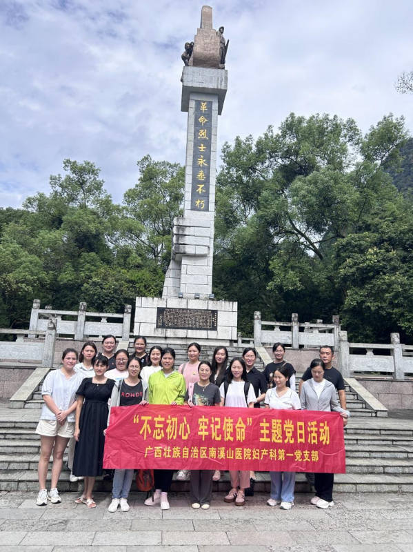 9月7日,为深入学习贯彻习近平新时代中国特色社会主义思想主题教育,加强医院党支部共建,深化医联体建设,提高基层医疗技术水平。由自治区南溪山医院妇产科第一党支部牵头联合妇产科第二党支部、妇产科第三党支部赴阳朔县开展“不忘历史,缅怀先烈”主题党日活动。