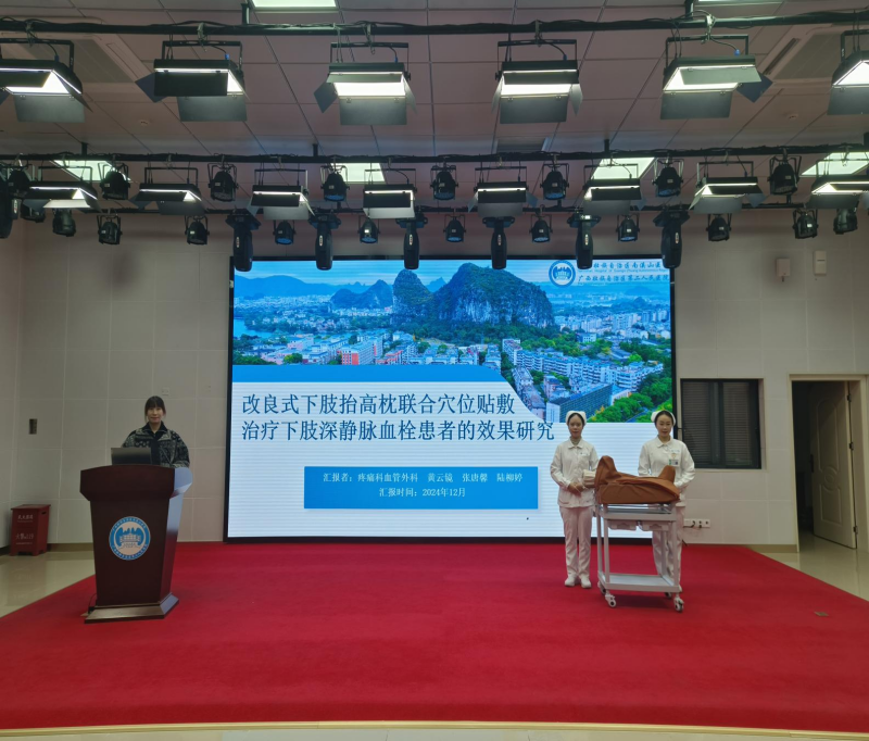比赛中,各项目代表依次登台,各科室结合自身专科特点,运用质量管理工具进行项目汇报,从护理实际工作出发,聚焦临床问题,围绕设定护理质量改善与患者结局、护理质量指标监测与管理实践、护理创新与护理质量提升、人文与护理服务质量提升等内容进行全面汇报,科室借助精心制作的 PPT、详尽的数据对比以及生动的案例分享,生动展现了护理质量改善项目成果,每一个项目都紧密围绕患者需求,致力于为患者提供更安全、高效、优质的护理服务。经过激烈角逐,疼痛血管外科的《改良式下肢抬高枕联合学位贴敷治疗下肢深静脉血栓患者的效果研究》获得一等奖。