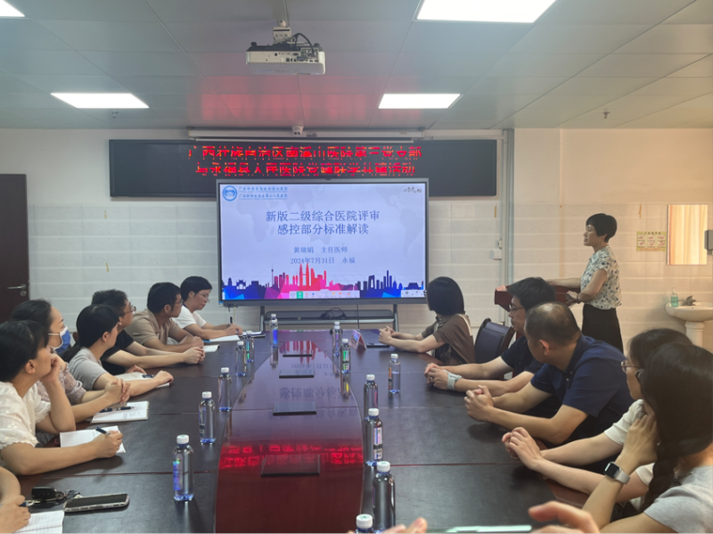 为全面贯彻落实党的二十大精神,贯彻落实习近平总书记关于纪律建设的重要论述,以赛促学、以学促行,推进党建引领医院医联体建设,促进党建与业务深度融合。7月31日,广西壮族自治区南溪山医院行政后勤第三党支部与医联体单位永福县人民医院开展党建联学共建活动,通过召开座谈会及专家授课的模式,共同促进双方党建与业务工作提升。座谈会由永福县人民医院副院长莫素宏主持,行政后勤第三党支部书记罗宁飞带领各党员同志与永福县人民医院中层领导及党员干部共同参加。