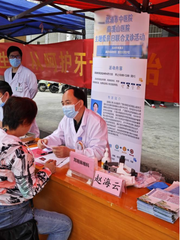 口腔科专家为前来咨询的群众进行免费口腔检查,询问相关口腔疾病状况,帮助分析口腔疾病问题,提供相关诊疗意见。