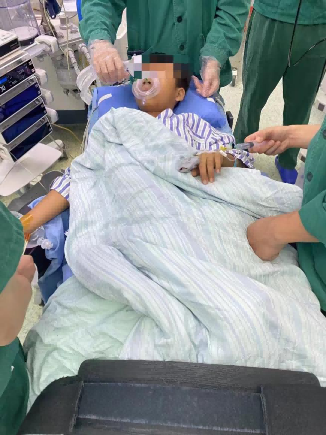 自治区南溪山医院呼吸与危重症医学科二病区主任屈东明博士第一时间了解乐乐的情况,考虑是异物卡在气管上端,随时有脱落导致窒息可能,情况十分危急,立即联系急诊科救护车前去接小孩,同时联系麻醉科、手术室安排紧急手术,次日凌晨2点乐乐经过医院医务人员检查和初步评估后立即送至手术室,为乐乐进行手术。