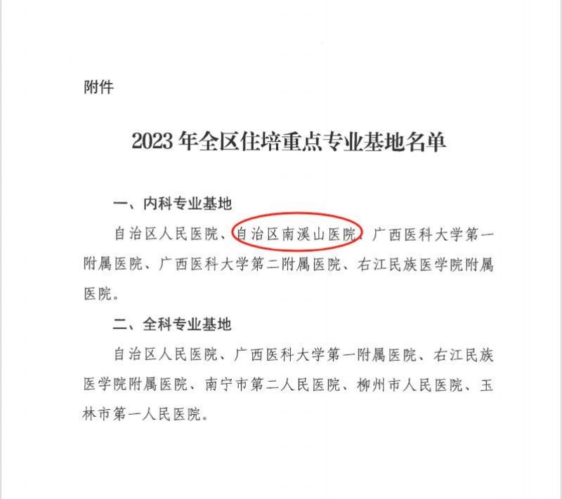 南溪山医院内科获批广西住培重点专业基地