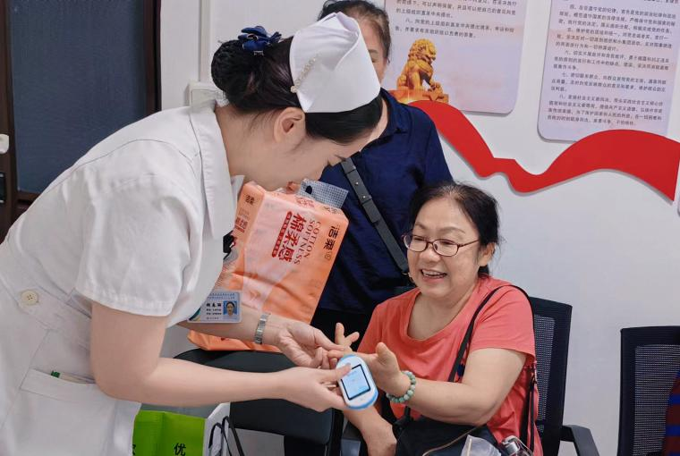 活动现场,内科第十六党支部黄志东书记与退休的老党员们细心交谈,详细了解他们的生活状况和需求,为他们进行健康答疑解惑,提供政策咨询。同时,党员青年为离退休职工进行血糖、血压检测,耐心讲解检测结果,提醒他们注意身体健康,养成健康的生活习惯。