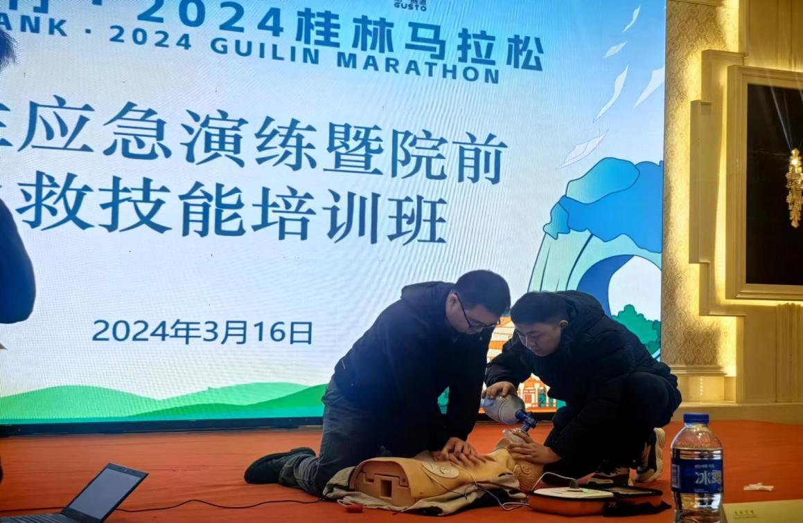 专业的急救保障团队和急救设备,是赛事安全的基础保障。本次赛事中,广西自治区南溪山医院作为此次赛事医疗救援保障单位之一,组建了7人的医疗保障小组,全力护航赛事安全有序进行。赛前,南溪山医院救护团队在人员物资、设施设备等方面做了充分准备,针对赛中可能出现的情况制定了详细的预案,多次进行医疗急救培训和模拟演练,明确职责分工和救治流程。