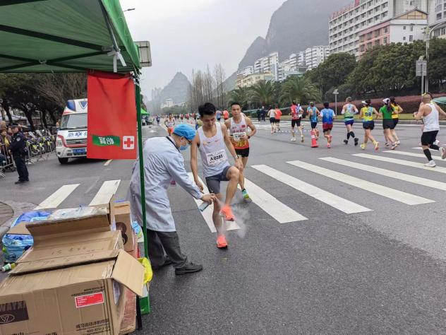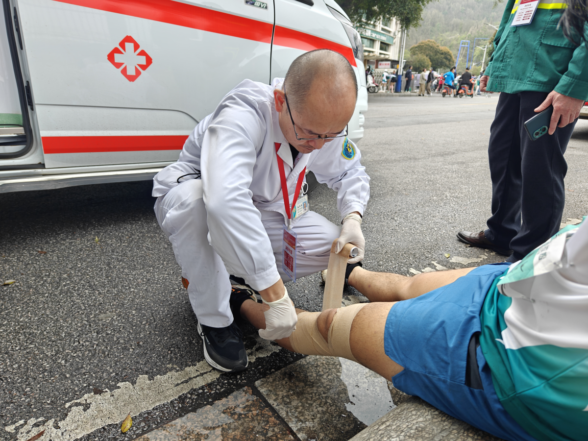 天光未亮,保障团队就携带好赛前备好的医疗包,急救箱等物资到达了赛事场地,做好了迎接运动员们到来的准备。赛事中,部分参赛选手出现不同程度的低血糖、肌肉拉伤、皮外伤、腿部抽筋、晕厥等各种不适症状,南溪山医院医护人员时刻保持准备状态,这些受伤的选手均得到了及时有效的救治。