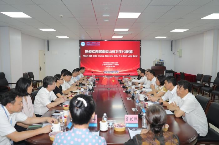 7月26日,越南谅山省卫生厅党组书记、厅长阮世全带领谅山省卫生代表团一行7人到自治区南溪山医院访问交流,双方就医疗卫生管理、医疗技术应用、人才培养等方面进行深入交流与探讨。广西壮族自治区卫生健康委员会党组成员、副主任黎君君、对外交流处处长黄文新、对外交流合作中心主任李玉芳全程陪同,南溪山医院党政领导班子及相关科室负责人参加会议并实地陪同参观。