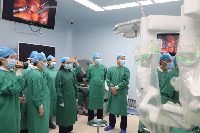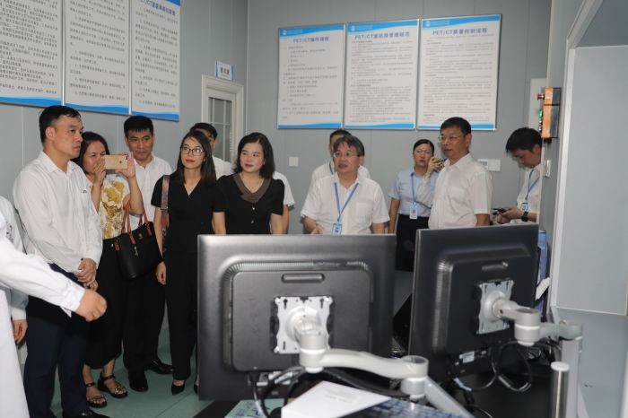 在医院相关部门的陪同和讲解下,代表团实地参观了医院大礼堂、院史陈列馆、内镜中心、达芬奇手术机器人、全息数字超级迭代PET/CT等先进的医疗设备及对越培训进修人员宿舍。越南代表团深入了解了医院的援越历史,以及援越结束后,中越友谊在医院的生动延续。并对医院特色疾病救治、智慧医疗服务、医学人才培养等方面的开展表示高度赞赏。