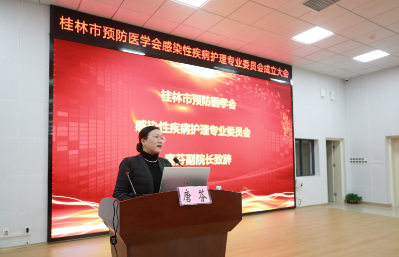 会上,唐芬代表医院党委发表了热情洋溢的致辞,她表示,在桂林市预防医学会的领导下,在医院领导的重视下,在各会员单位的大力支持下,桂林市预防医学会感染性疾病护理专业委员会必将发展得越来越好。
