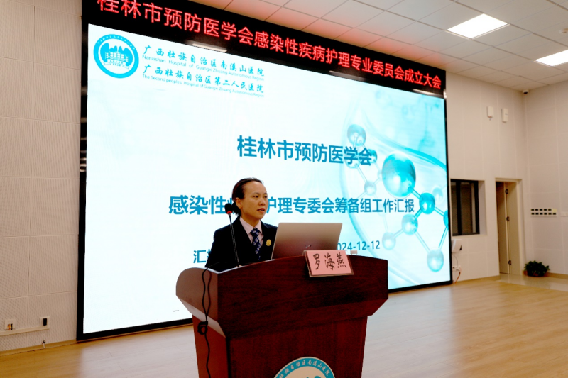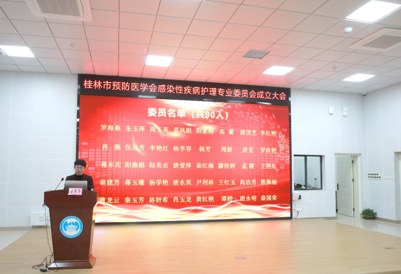 桂林市预防医学会感染性疾病护理专业委员会筹备组负责人罗海燕在会上作桂林市预防医学会关于感染性疾病护理专业委员会筹备报告,会议筹备组介绍了专委会筹备工作情况和工作计划。