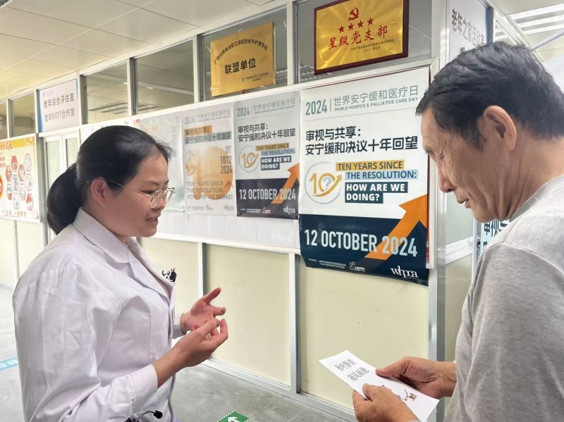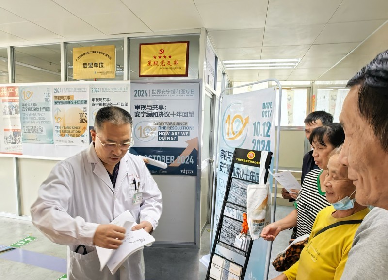 10月12日是世界安宁缓和医疗日,今年的主题是“审视与共享:安宁缓和决议十年回望”。为进一步宣传和推广安宁缓和医疗的理念,自治区南溪山医院老年病科向北京生前预嘱推广协会申请了安宁缓和医疗相关科普资料及宣传物资,开展了系列科普宣讲活动,向大众普及安宁缓和医疗相关知识。