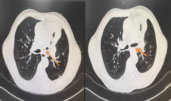图三 如下图 术前与术后肺部CT对比,狭窄的气道明显扩张