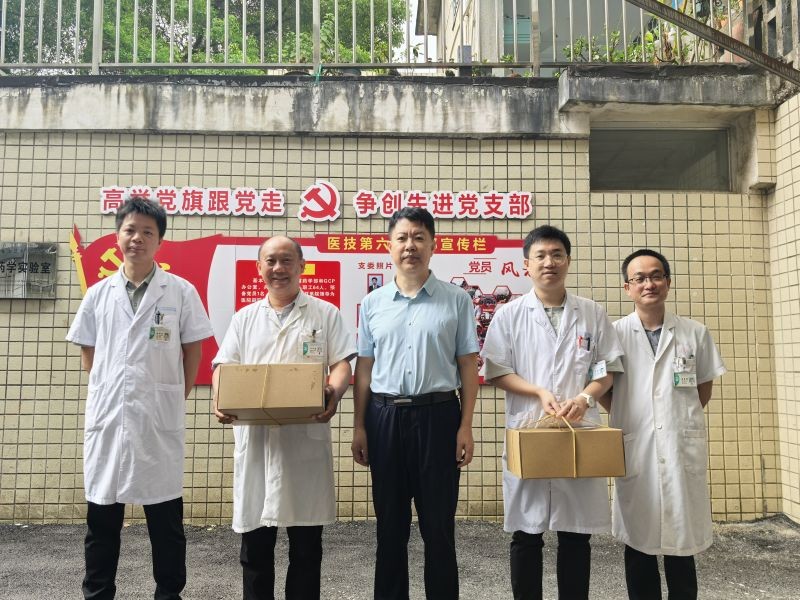 在第七个中国医师节到来之际,8月19日上午,广西壮族自治区南溪山医院举行了一场温馨而庄重的节日慰问活动。医院党委书记柳宏林与党委副书记、院长李朝旭带领医院党政领导班子成员及分工会委员,深入各科室,向辛勤奋战在一线的医务工作者致以最诚挚的节日问候,并亲手送上精心准备的慰问品,传递着满满的节日祝福与关怀。