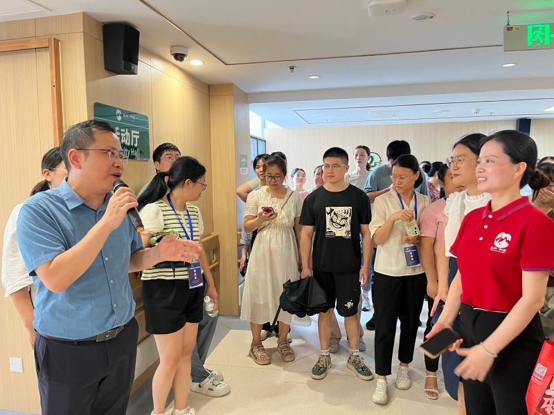 8月24日,广西壮族自治区南溪山医院老年病科李贵宇主任带领广西老年医学人才培训班的医生、护士一行64人到桂林仙源夕阳红养老中心参观学习,该中心宋飞主任亲切接待了学员。