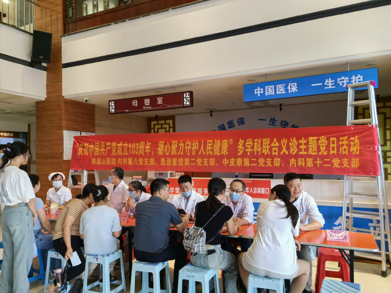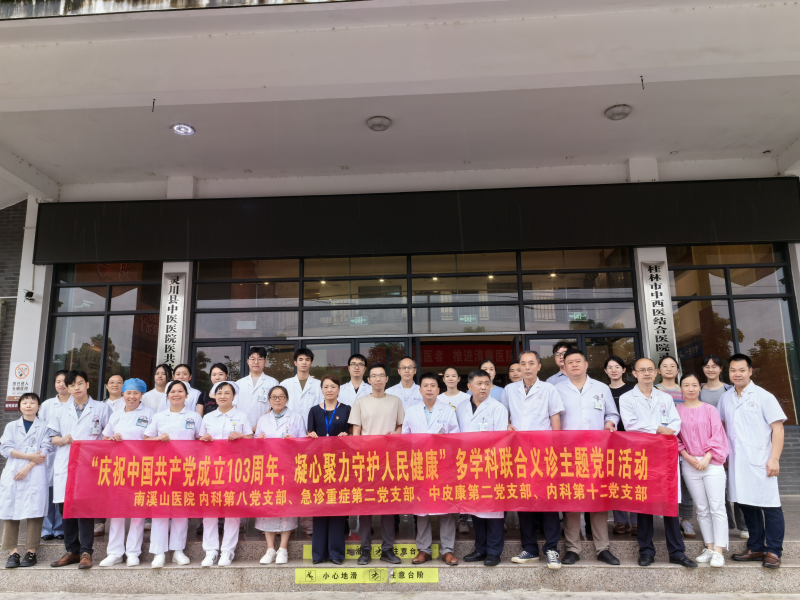 铭记入党初心,凝聚奋进力量。6月30日,广西壮族自治区南溪山医院呼吸一区组织开展“庆祝中国共产党成立103周年,凝聚聚力守护人民健康”多学科联合义诊主题党日活动。内科第八党支部、急诊重症第二党支部、中皮康第二党支部、内科第十二党支部,来到灵川县中医院开展义诊活动。