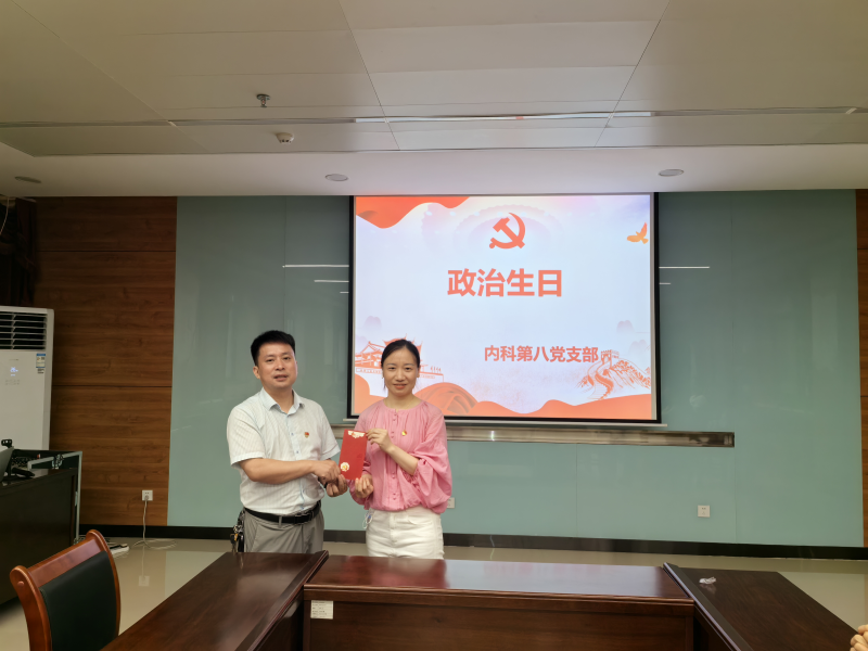 当日,恰逢有支部党员的政治生日,第八党支部书记佘巍巍同时为该党员举办简短的庆生仪式。