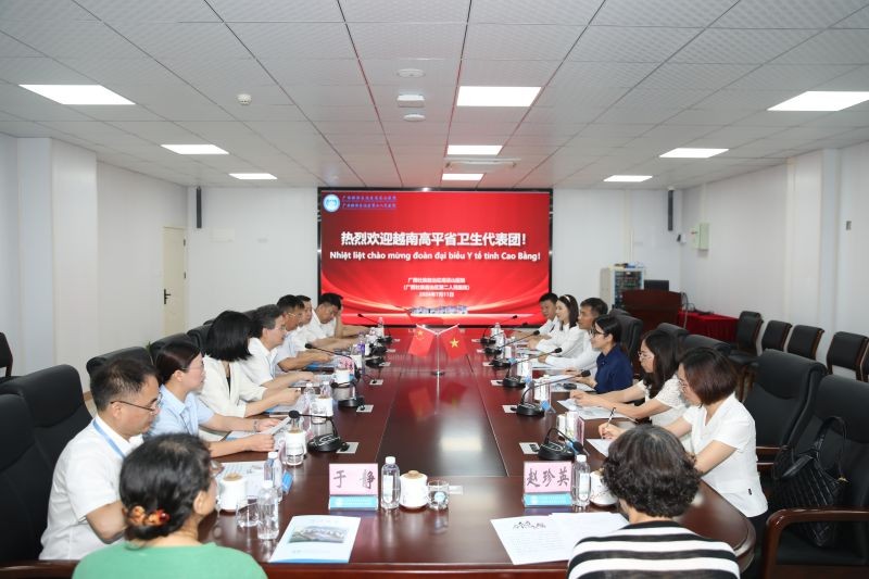 7月11日,越南高平省卫生厅副厅长农文圣带领高平省卫生代表团一行5人,在广西壮族自治区卫生健康委员会对外交流处处长黄文新、自治区卫生健康委对外交流合作中心主任李玉芳陪同下到广西壮族自治区南溪山医院访问交流,南溪山医院党政领导班子及相关科室负责人接待代表团一行。