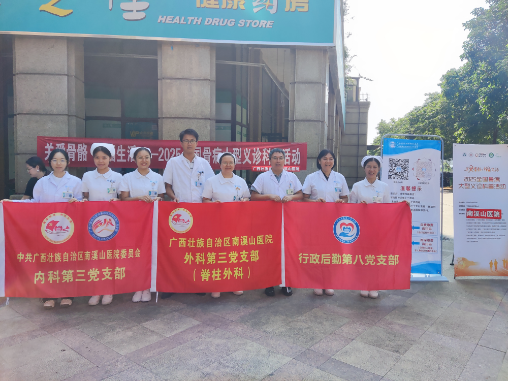 为持续深化“我为群众办实事”,10月16日上午,广西壮族自治区南溪山医院行政后勤第八党支部联合外科第三党支部、内科第三党支部等多支部,一起走进漓江大美社区,开展“关爱骨骼 幸福生活”2025年全国骨病大型义诊暨“智慧就医”主题党日活动,把优质医疗资源和“指尖上的医院”一并送到群众家门口。