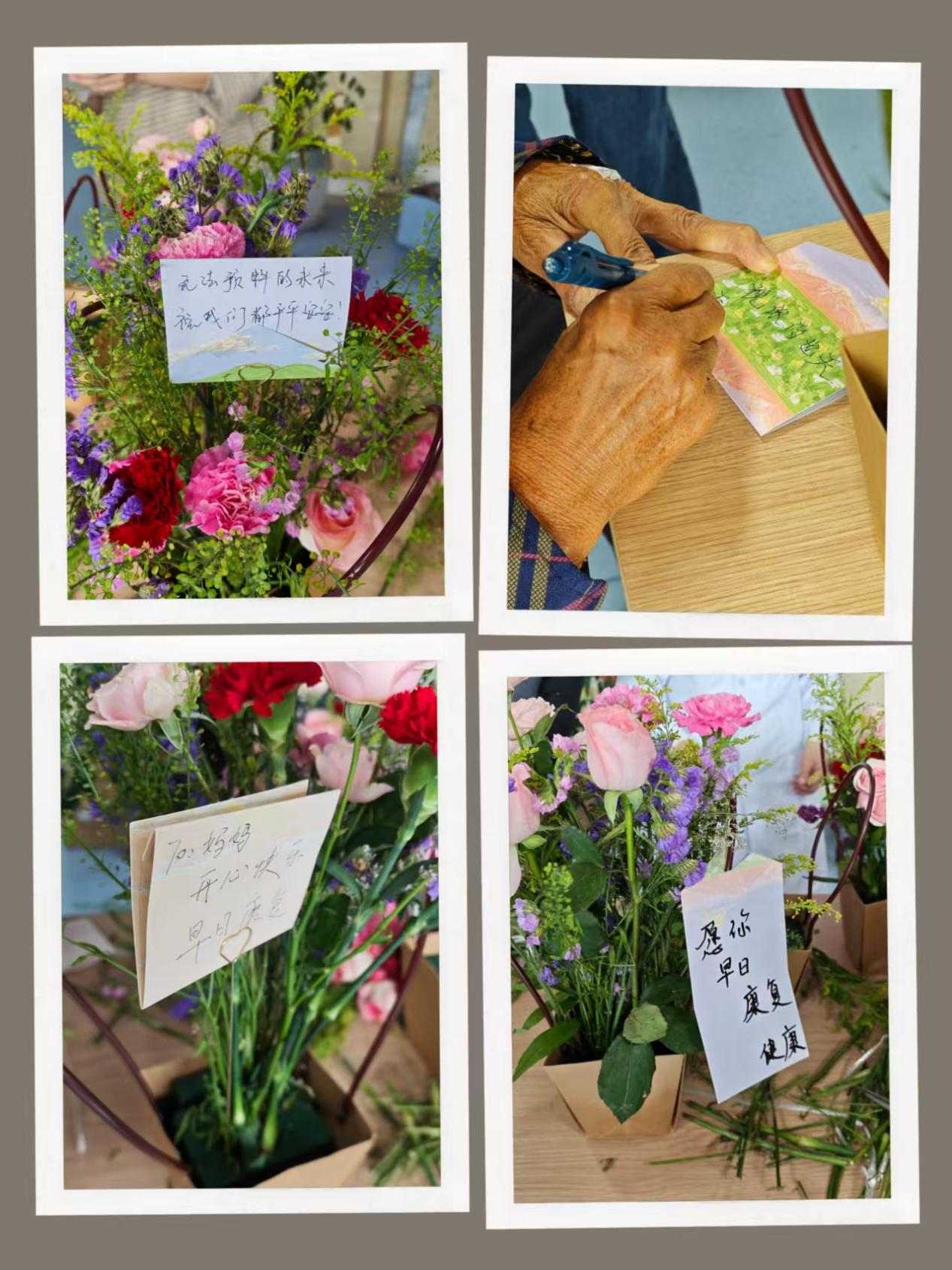 宣讲结束后,一场名为“花香寄情”的创意插花活动温馨上演。在医护人员的耐心陪伴下,长者们巧手翻飞,将一朵朵鲜花精心搭配,创作出一个个寄托着美好希望的花艺作品。活动现场欢声笑语,其乐融融,每一束鲜花都承载着对生命的热爱与对未来的祝福。