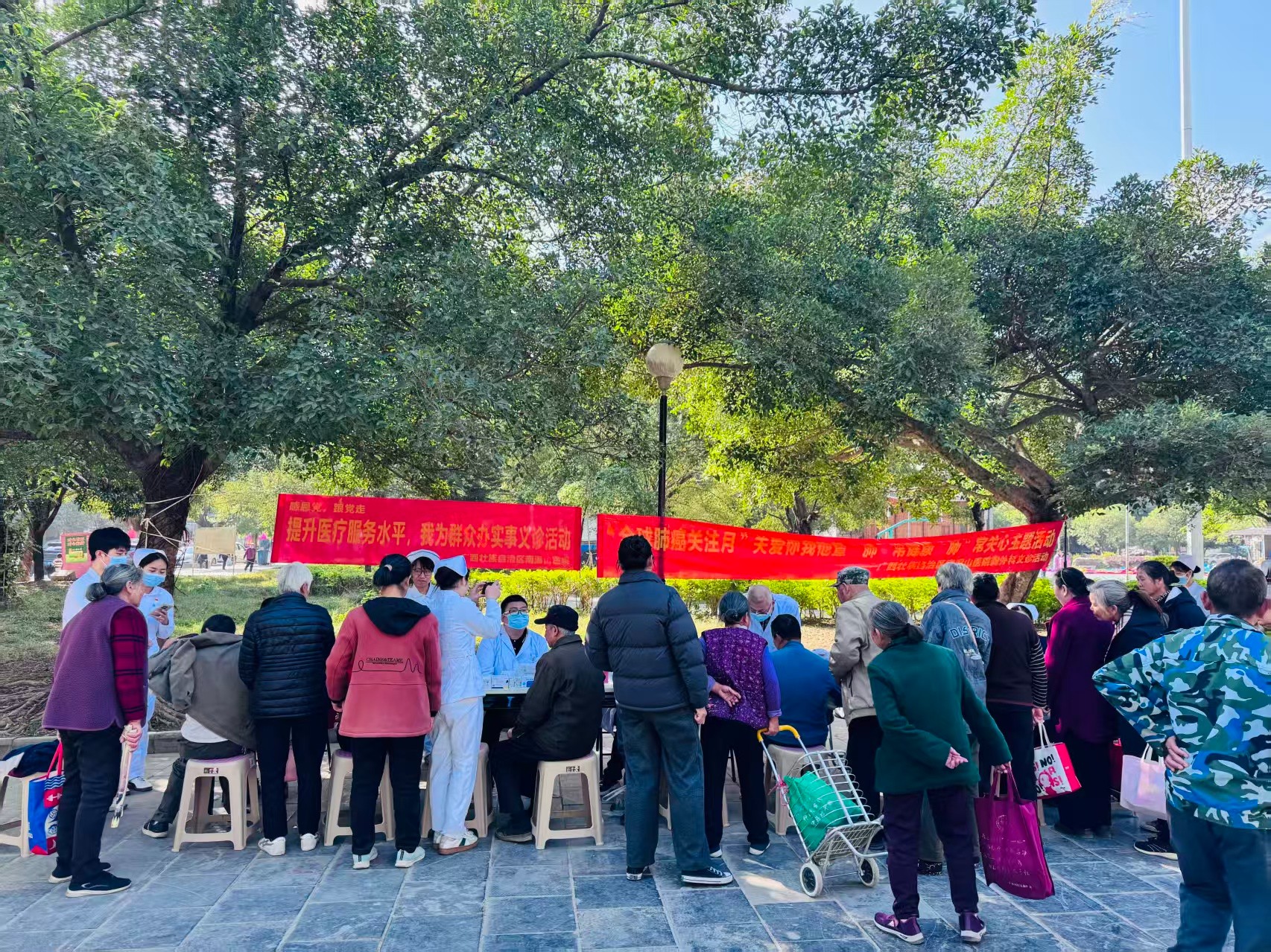 活动现场,外科第四党支部书记熊荣生同志带领医疗团队耐心细致地为每一位前来咨询的居民提供专业诊疗服务。他亲切询问患者的健康状况,认真解答疑问,并针对个体情况给出科学的健康建议,展现了医者仁心的职业精神。内科第六党支部李杰主任也在现场为病人看诊及分发所需药物。外科第四党支部护士长刘文则通过生动的健康宣教,向居民普及肺癌早期筛查的重要性,讲解如何通过戒烟、合理饮食、规律运动等方式预防疾病,现场互动热烈,居民们纷纷表示受益匪浅。