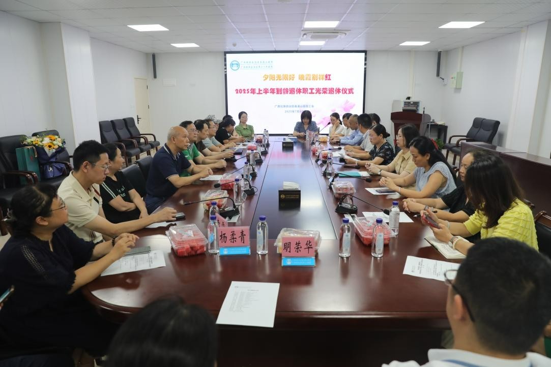 7月4日下午,在自治区南溪山医院教学楼一楼中控会议室开展了以“夕阳无限好,晚霞别样红”为主题的2025年第一批职工光荣退休仪式。医院副院长、医院工会主席唐芬,工会副主席侯小云,退休职工所在科室人员代表及职能部门工作人员参加活动。大家齐聚一堂,共同见证这一饱含深情的时刻。