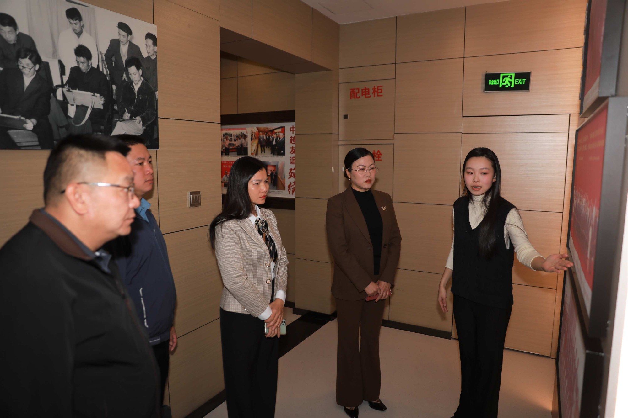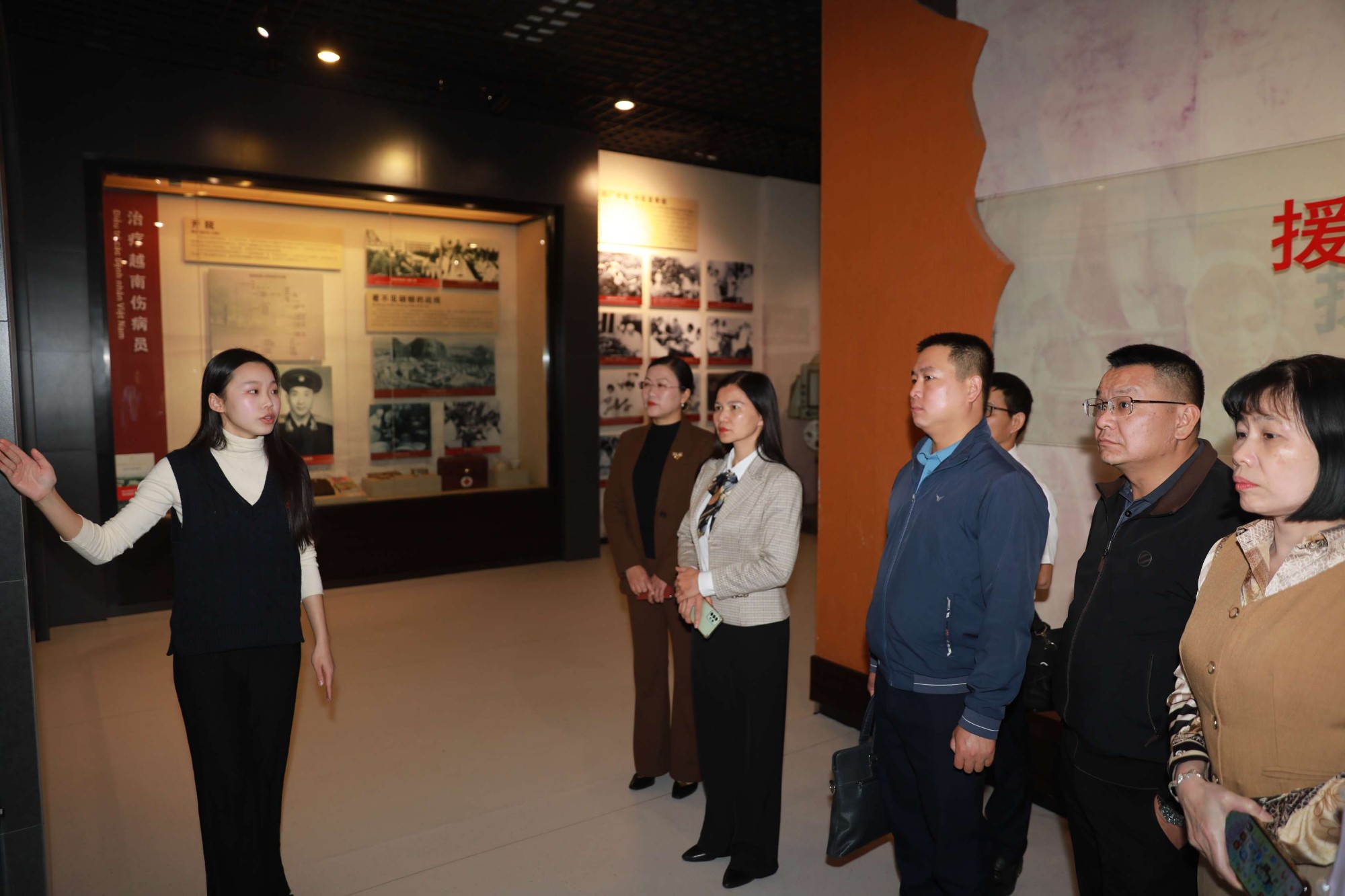 在讲解员的带领下,越南代表团参观了南溪山医院大礼堂和院史陈列馆。馆内陈列丰富的历史图片和实物资料,生动展现了医院自成立以来的发展脉络,以及在医疗救治、学科建设、国际合作等方面取得的成就。代表团成员认真听取讲解,并不时就医院的历史沿革、医疗服务、对外交流等内容进行询问。