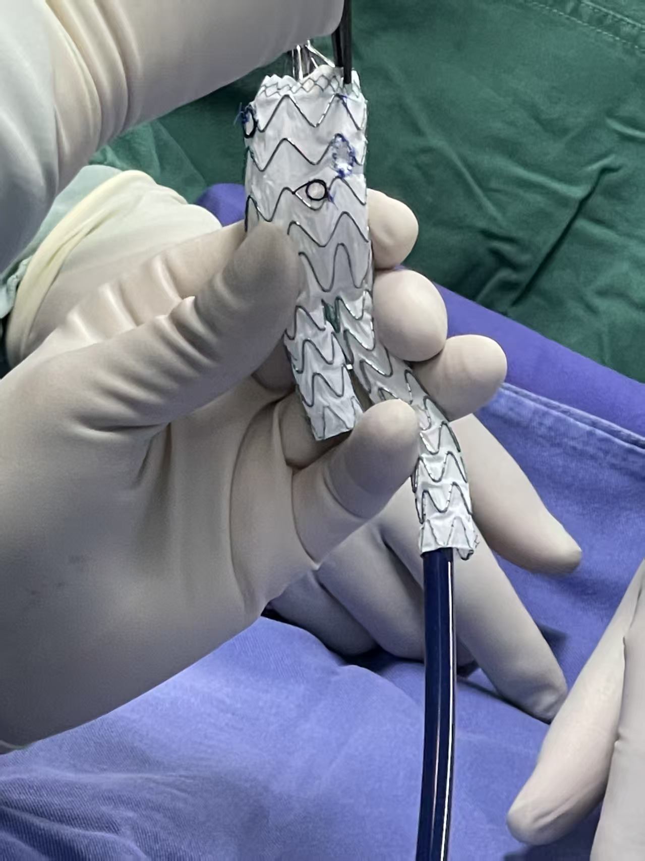 面对陈先生的复杂病情,常规标准化支架已无法满足需求,这类支架无法精准避开多支脏器血管分支,极可能导致术后脏器缺血。经过血管外科、麻醉科、肾内科等多学科团队反复研讨,血管外科白韬主任最终确定方案:采用业界公认的高难度 “体外开窗” 技术,联合多脏器分支支架植入术。