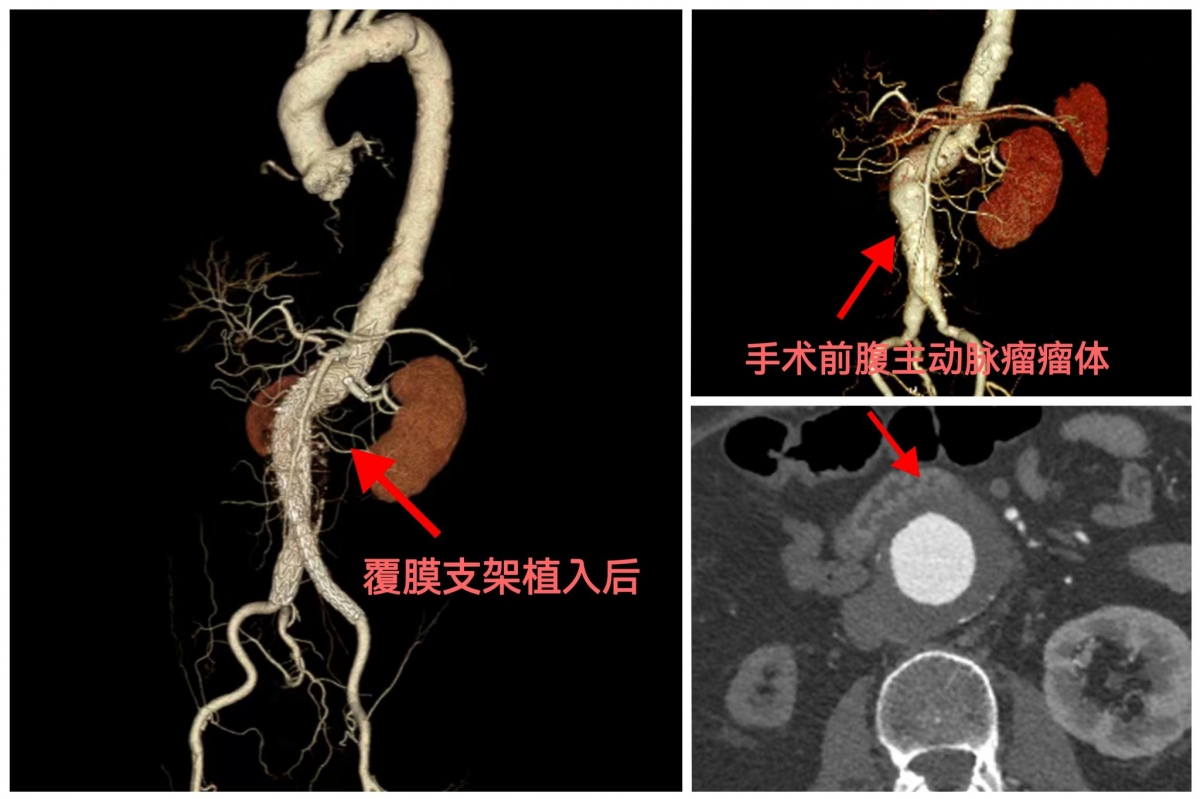 陈先生术后恢复十分顺利,得益于团队精湛的技术和术后精心的护理,没有出现感染、支架内漏等任何并发症。术后 1 个月返院复查时,影像学检查显示:8 枚支架位置全部精准,支架内血流通畅,动脉瘤未再显影;肾功能、血压等关键指标也保持稳定。